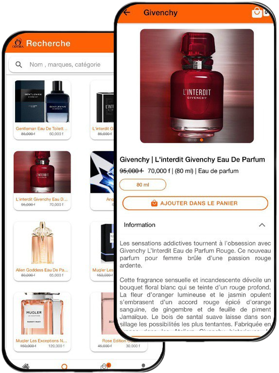 L'application mobile permet aux clients de faire leurs achats de parfums de marque et niche de n'importe où, à tout moment. Ils n'ont pas besoin de se déplacer dans un magasin physique ou de passer des appels téléphoniques pour passer une commande.